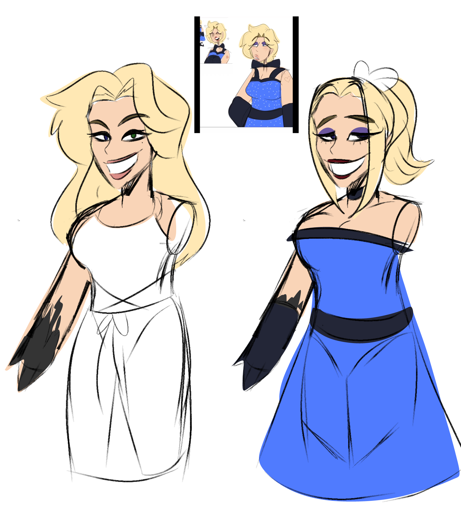 As of the first set of updates, Mother, or Mama, whichever you wish to call her. Is a very old OC of mine and she does hold a close place in my heart. She is a part of a game series I made when I was in middle school. I believe I named it Mythical Tales, and she was I think the second chapter of the three I had made for the first segment. Midnight Office Ours, Mother's Home, and Murder Manor. Would love to get back to the other's I've made. Trust me there is way more than three other games. With Mother I've looked back on old art of her and decided not much needs changed for her character, her original design was almost perfect to me. Just some few tweaks to make her have a more simplistic style is what I wanted. The first two ideas were to make her doll like, skinny, and that unnerving smile. But I decided to make her a bit more curvy yet keep her same features. Tired eyes, aging, that smile. (Seen in attachments). Huh... what's those markings? Best if I don't touch on that just yet! She's no ordinary woman after all...