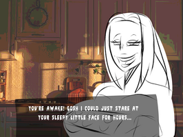 Will be updating my pages as they go, I know I should have waited a bit to make them since there is the potential of abandoning the project, but this is helping me stick to it and not do it! So i'll be slowly doing that as I continue writing the story. I have the basics down, and some secret things I like to add. With how im treating this game, do expect it to be uncomfortable. That's the goal to make it that way, and give Mother more characterization! Again this is all done by me so I'm trying not to rush myself with it but I've needed a project to keep me busy since my motivation has been bad lately. And I do want to make something I'm really proud of, so hopefully things work out. Who knows!
